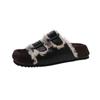 Soft waxy soft waxy~ winter warm thickened wool cotton shoes women's versatile one-button thick-soled fluffy slippers tide.