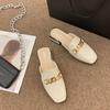 2024 Nouvelles Mules à Chaîne Métallique Femmes Bout Carré Dames Chaussures Rayées Sandales d'Été Mode Sandales à Talon Carré Pantoufles de Loisirs pour Femmes