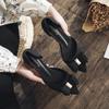 Sandales gelée d'été pour la plage femmes slip-on nœud pour dames bout pointu solide sandales chaussures à talons hauts moyens épais scarpe 2024