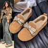 Nouvelles Chaussures d'Hiver 2024 en Coton Velours Mode et Décontractées Chaussures Simples d'Extérieur Semelle Épaisse Nœud Chaussures Haricot pour Femmes