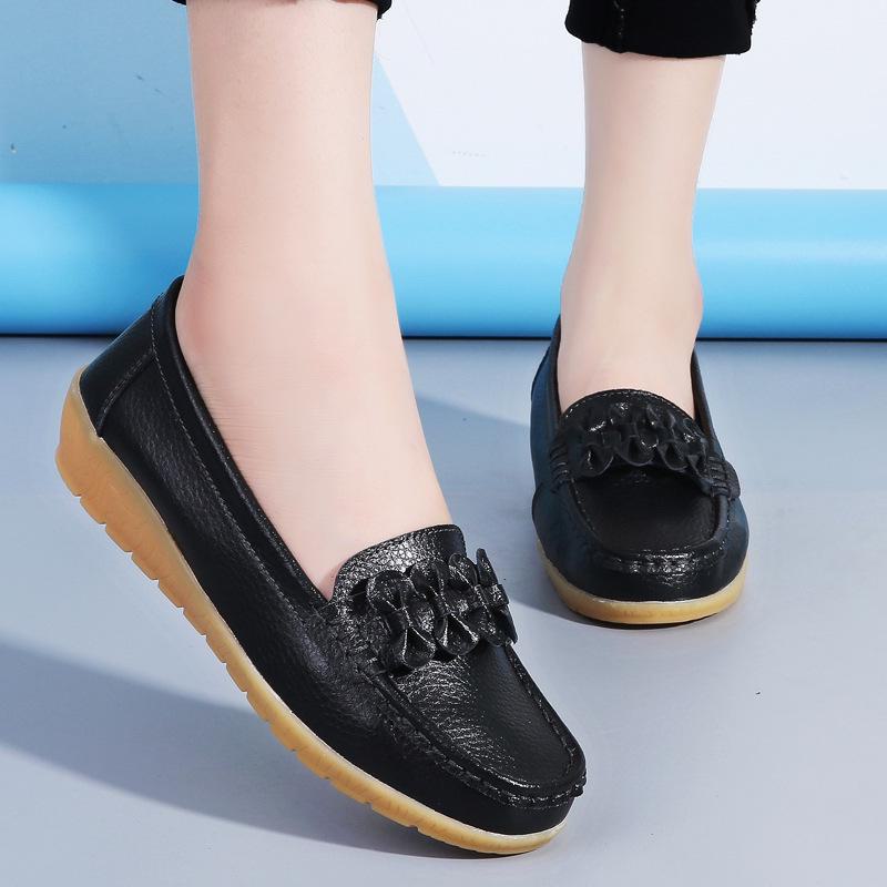 Chaussures d'infirmière en cuir véritable pour femmes, printemps et automne 2023 : chaussures décontractées à talons plats et compensés