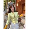Gilet Tricoté Patchwork Chic Jaune Clair pour Femmes Nouveau Automne et Hiver Slim Doux Épicé Manches Longues Manteau Haut