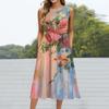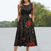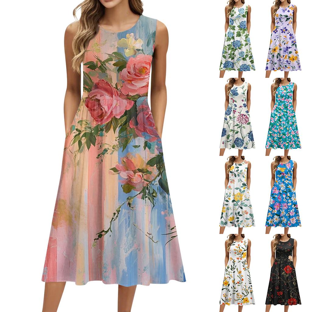 Robe mi-longue décontractée à imprimé à la mode pour femmes, col rond, sans manches, avec poche