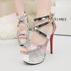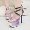 Fashion super high heel waterproof table fish mouth gradual change thin heel hollow thin women's shoes