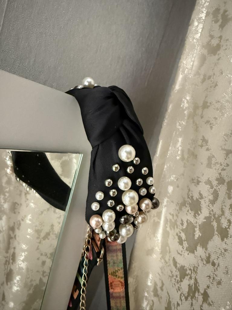 Bandeau de perles noué européen et américain: Coiffe à large bord tendance avec tissu doublé et nœud central