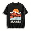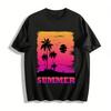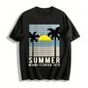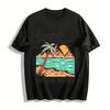 Aventure d'été Coucher de soleil Cocotier Montagne Zone pittoresque T-shirt Homme Femme Hip Hop Coton Tops Couple T-shirts surdimensionnés Couple