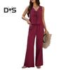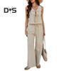 Tenue d'été 2 pièces pour femme, haut sans manches noué sur le devant, pantalon large, tenue décontractée pour la maison, les fêtes et le bureau