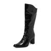 Large size 33-45 Large size women's autumn and winter boots thick heel rear zipper patent leather women's shoes