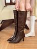 2024 Women's Luxury Gray Stiletto Boots - Slim, Pointed Heels for Autumn