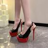 Super high heels single shoes women 2025 summer fish mouth platform stiletto patent leather sandals women large size women high