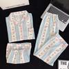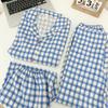 Pyjama d'été à carreaux en coton fleuri: Ensemble trois pièces à manches courtes pour femme de style japonais - Vêtements d'intérieur doux de style célébrité Internet.