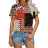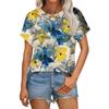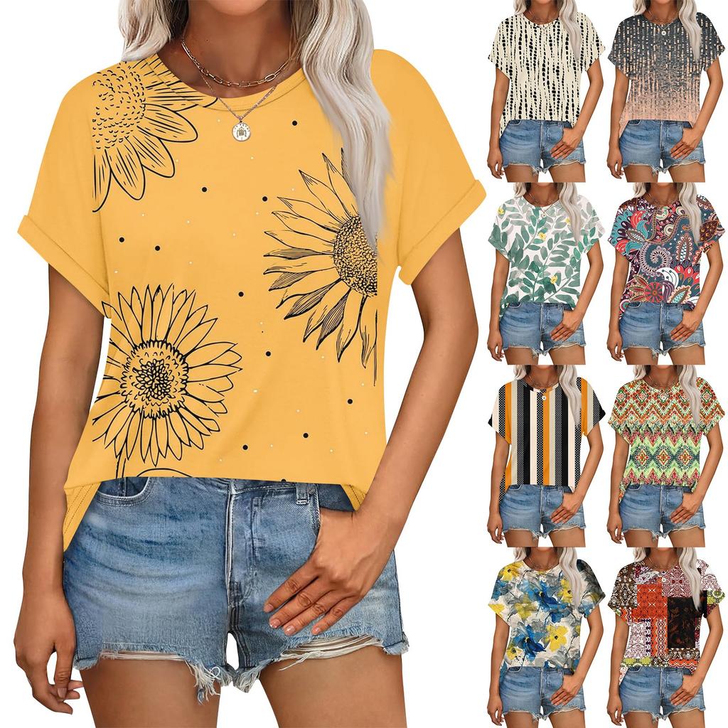 Haut Floral Décontracté Mode Femme Col Rond Manches Courtes Ourlet Roulotté