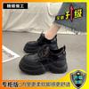 Black thick heel single shoes women's black 2024 autumn new fashionable versatile thick sole height increase small leather shoes women