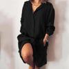 Cardigan Chemise Femme Coton Mi-Long Manches Longues Uni Blouses Femme Tendance 2025 Haut Décontracté Manches Longues