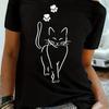 T-shirt Décontracté Grande Taille, T-shirt à Manches Courtes et Col Rond avec Imprimé Chat Mignon et Patte pour Femmes, T-shirt Unisexe à Extensibilité Moyenne