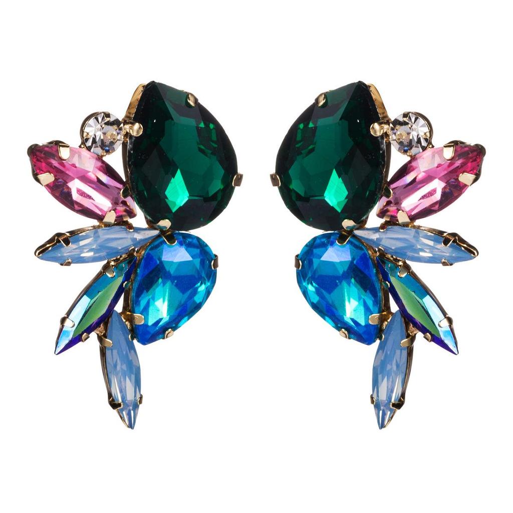 Boucles d'oreilles exagérées en cristal coloré européen et américain avec diamants pour femmes