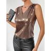 Gilet d'été pour femme à col en V sans manches fin à carreaux