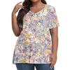 T-shirt à col en V décontracté pour femme, manches courtes, grande taille, imprimé