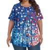 Women's Fashion Plus-size Casual Short-sleeved Independence Day Print Crew-neck Front Pleat Top