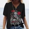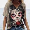 Summer V-neck 3D Funny Face Printed Top Fashionable Casual Short Sleeved Women's T-shirts
