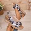 2025 summer new European and American style round head open-toed leopard print one-word buckle women's large size wedge sandals