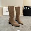 Small thick heel pleated western cowboy boots women's 2024 autumn new pointed suede short medium tube tall stacking boots