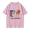 Je mange du ciment T-shirt Drôle Sarcastique Offensant Aléatoire Chat Mème Imprimé T-shirts Femmes Unisexe Hauts Décontractés