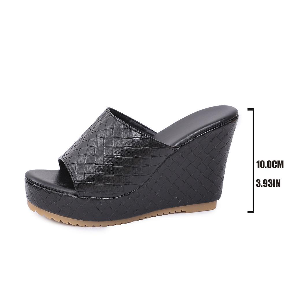 Wedge heel slippers women's new thick-bottomed plaid pattern waterproof table muffin bottom fish mouth one-word sandals large size