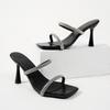2025 summer new wind one-word rhinestone women's large size thin heel square head cool slippers
