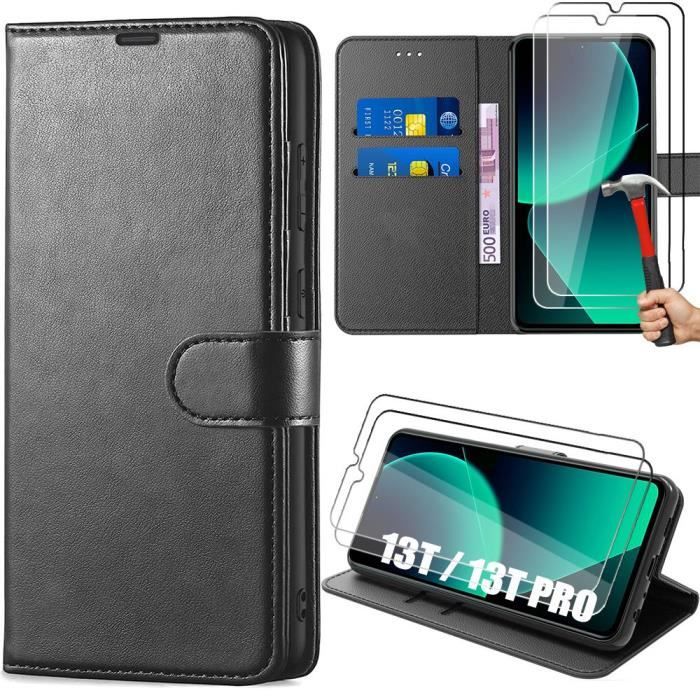 Coque + 2 Verres Trempés - Xiaomi - 13T/13T Pro - Etui Antichoc - Cuir PU - Noir
