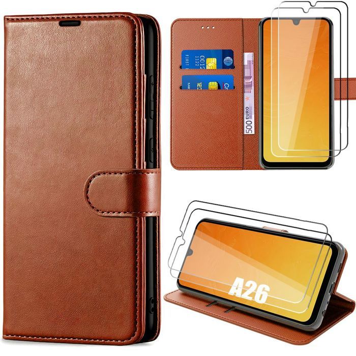 Coque de protection - BOOLING - pour Samsung Galaxy A26 5G - Antichoc - Effet Cuir Marron - 2 Verres Trempés