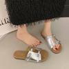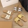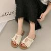 Pantoufles françaises à une pédale pour femmes 2025 nouvel été extérieur à semelle plate pantoufles à un mot double boucle plage cool pantoufles femmes