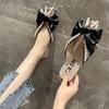 Foreign trade 2024 summer new floral pearl bag head flat-bottomed slippers women's bow casual half slippers tide