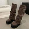 Bottes en cuir souple pour filles, jolies, cool et chaudes, bottes western à semelles épaisses, mais bottes au genou, bottes de chevalier hautes
