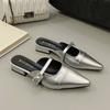 Printemps 2025 nouvelles demi-pantoufles à talon épais à bout pointu à enfiler chaussures pour femmes à porter à l'extérieur chaussures Mary Jane argentées