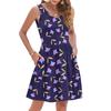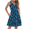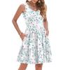 Mode Été Femme Décontracté Col V Plissé Coutures Petit Imprimé Floral Sans Manches Robe Gilet Avec Poches