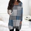 Womens Tops Square Collar Long Sleeve Blouses Casual Mid-length Shirts Fashion Print Tunic Tops With Pockets