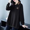 Loose Color Block Patchwork Turn-Down Collar Plus Size Sweatshirt for Moms
