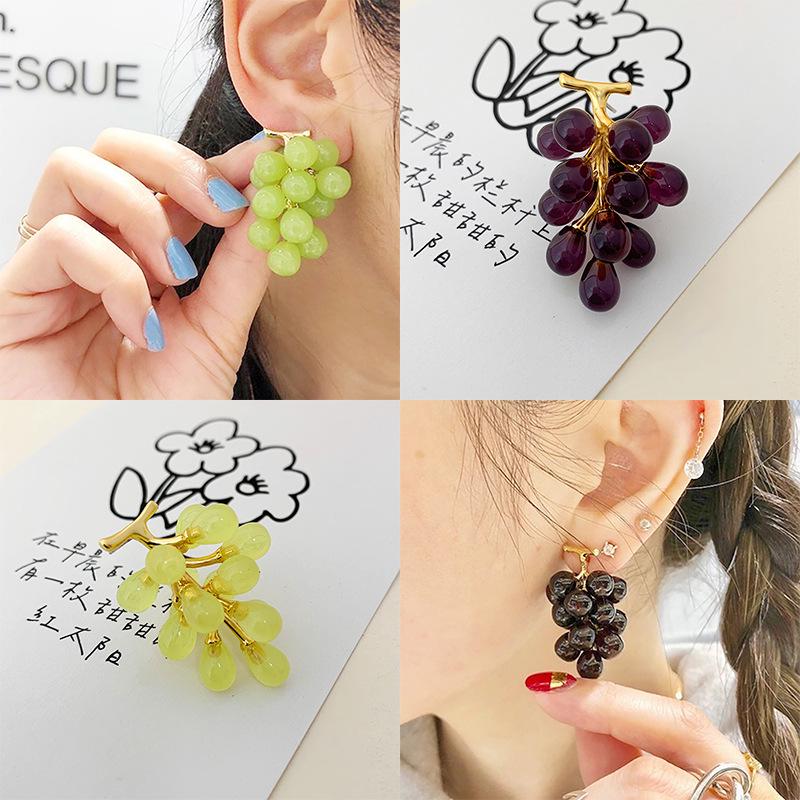 Boucles d'oreilles puce en forme de fruits style japonais et coréen, Muscat vert et raisin violet pour femmes