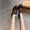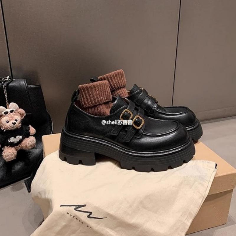 Chaussures Peau de Cheval Lavée Petite Boucle Dorée Talon Épais Plateforme Mocassins Chaussures Simples Chaussures en Cuir Petites pour Femmes