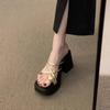 Pantoufles à talons hauts tempérament magnifique pour femmes été port extérieur à la mode nouveau haut de gamme sandales de mode à talons épais