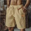 Cotton Linen Shorts with Drawstring Elastic Waistband Straight Legs Solid Color Breathable Daily Beach Five Point Casual Shorts