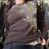 T-shirt thermique Y2K Grunge Cyber Mall Goth Imprimé Graphique Crânes Manches Longues Pulls Tops Femmes Années 90 Tees Esthétiques Vintage