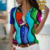 2025 Été Nouvelle Mode Femme Chemise Décontractée à Manches Courtes et Col en V Boutonnée avec Imprimé Abstrait