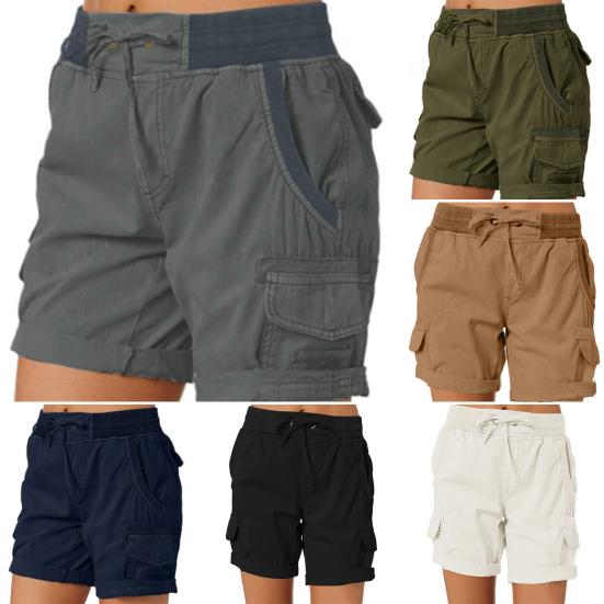Ces shorts pour femmes sont confectionnés dans un tissu respirant mélangé coton, assurant un confort tout au long de la journée.. La couleur unie et le design à poches offrent un look décontracté d'été simple mais élégant..