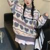 Women's Jacquard Love Sweater Autumn/Winter Knitted Sweater Loose Long Sleeve Coat Women's Top