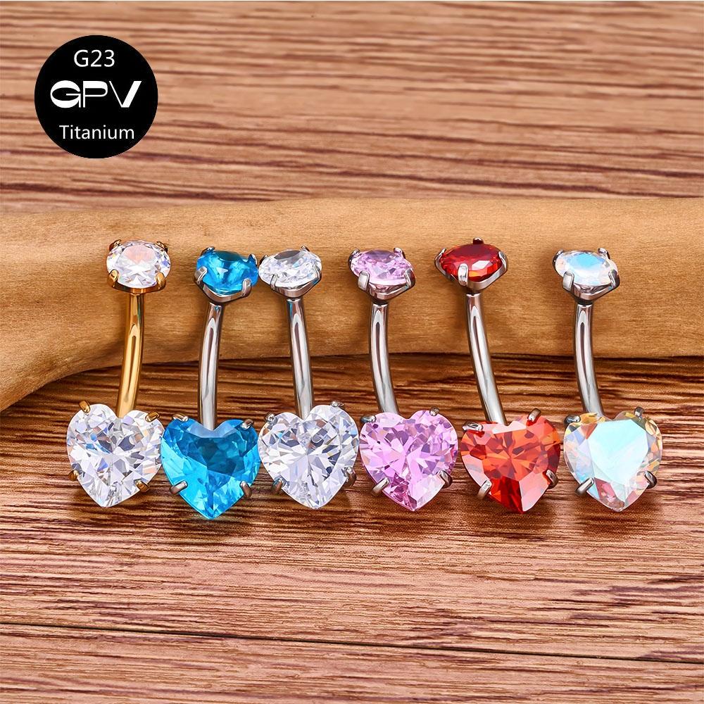 G23 Clou de nombril avec zircon en forme de cœur Titane de qualité implantaire Mode Classique Femmes Piercing Zircon Anneau de nombril