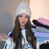 Autumn and Winter Casual Letter Patch Knitted Hat Warm Pullover Cold Hat Korean Version Ins Cute Cat Ear Wool Hat Women