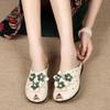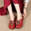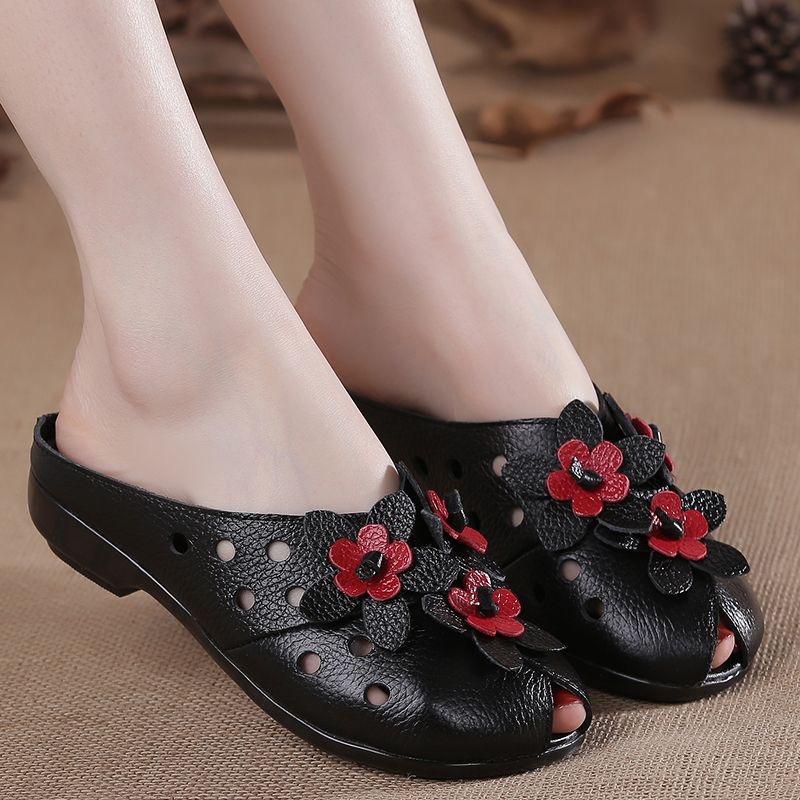 2026 Summer Genuine Leather Shoes Women Sandals Old Beijing Style Flat Shoes Tiny Flowers Shoes Black Red Plus Size 42