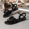 Mode Sandales Plates Françaises à Bout Rond Femme 2025 Été Nouveau Marron Rétro Noir Confortable Chaussures Romaines Chaussures pour Femmes Chaussures à Plateforme